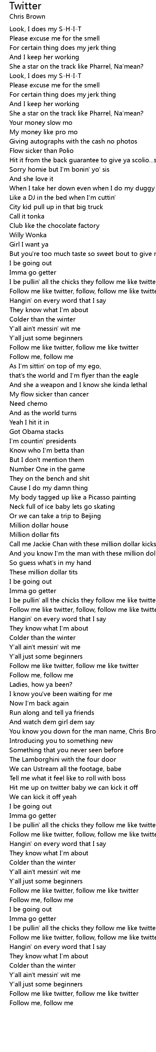 Follow me like twitter, follow, follow me like twitter |