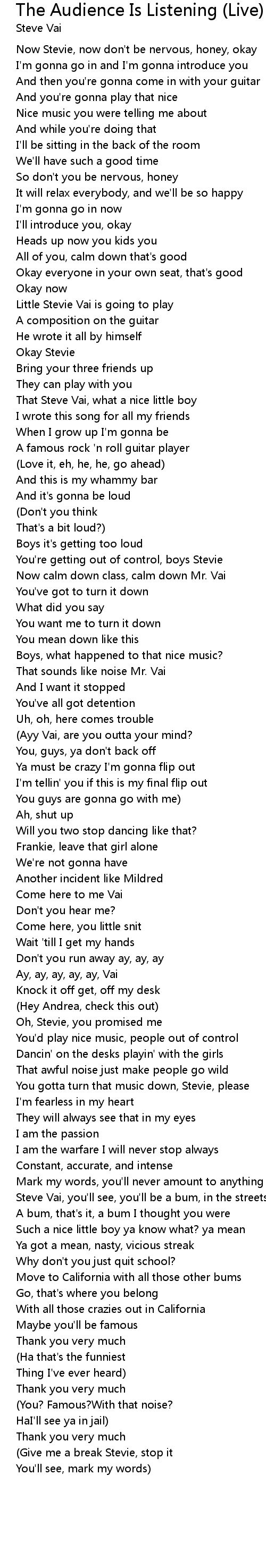 Now calm down class, calm down Mr. Vai |