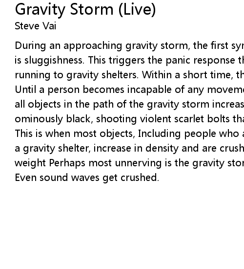 weight Perhaps most unnerving is the gravity storm's eerie silence. |