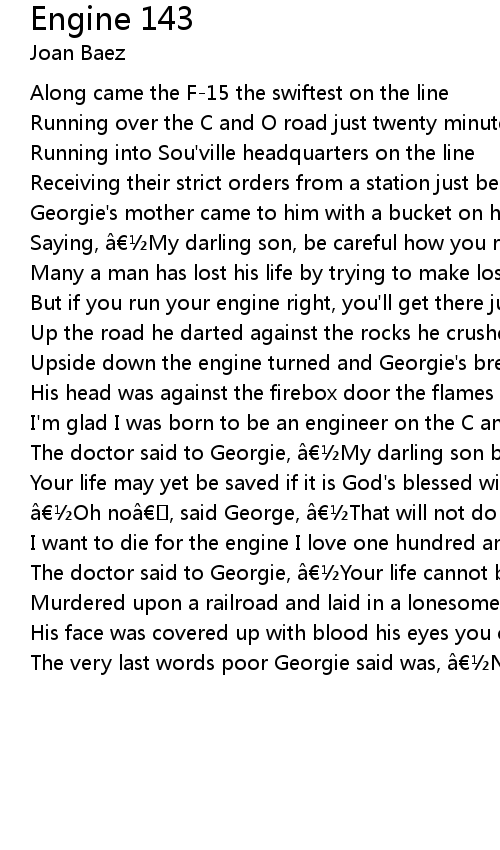 | I' m glad I was born to be an engineer on the C and O road to die | |