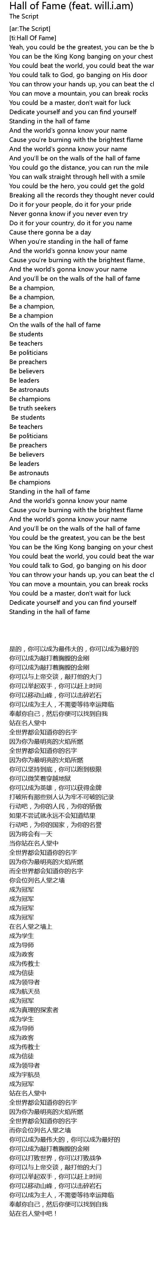 | [02:46.58] | And you'll be on the walls of the hall of fame |