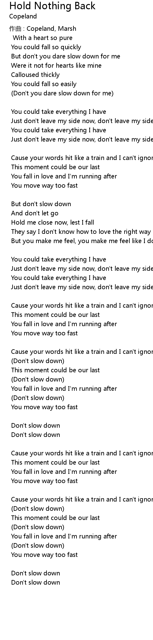 | (Don't slow down) | |