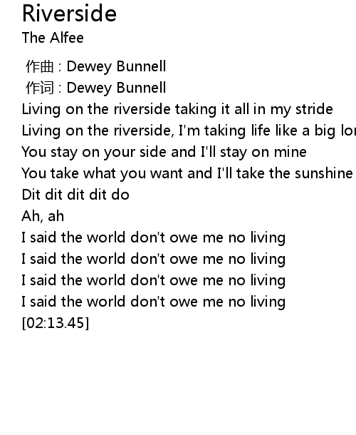 | [01:03.20] | Living on the riverside taking it all in my stride |
