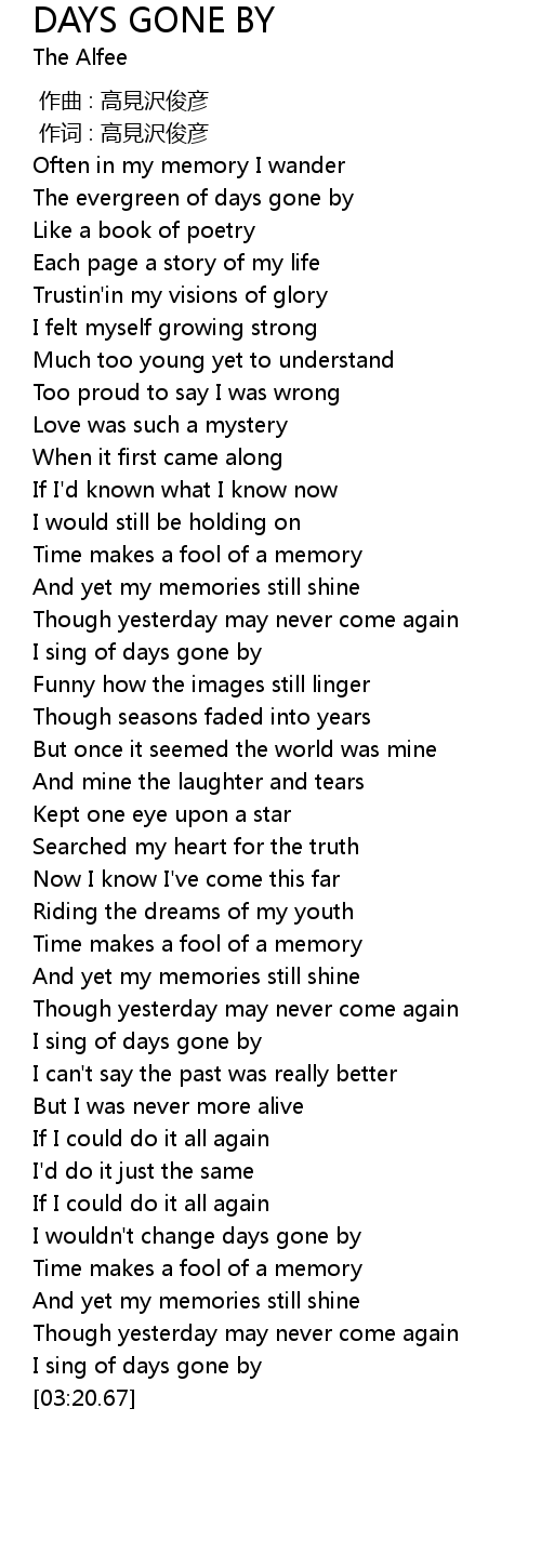 | [03:17.42] | I sing of days gone by |