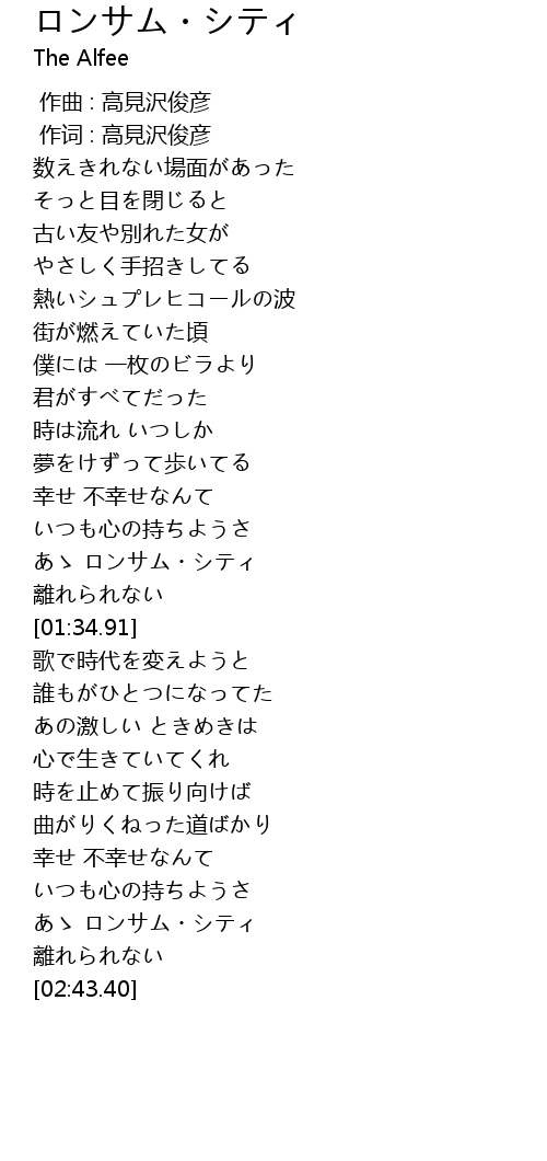 | [02:25.17] | あゝ ロンサム・シティ |