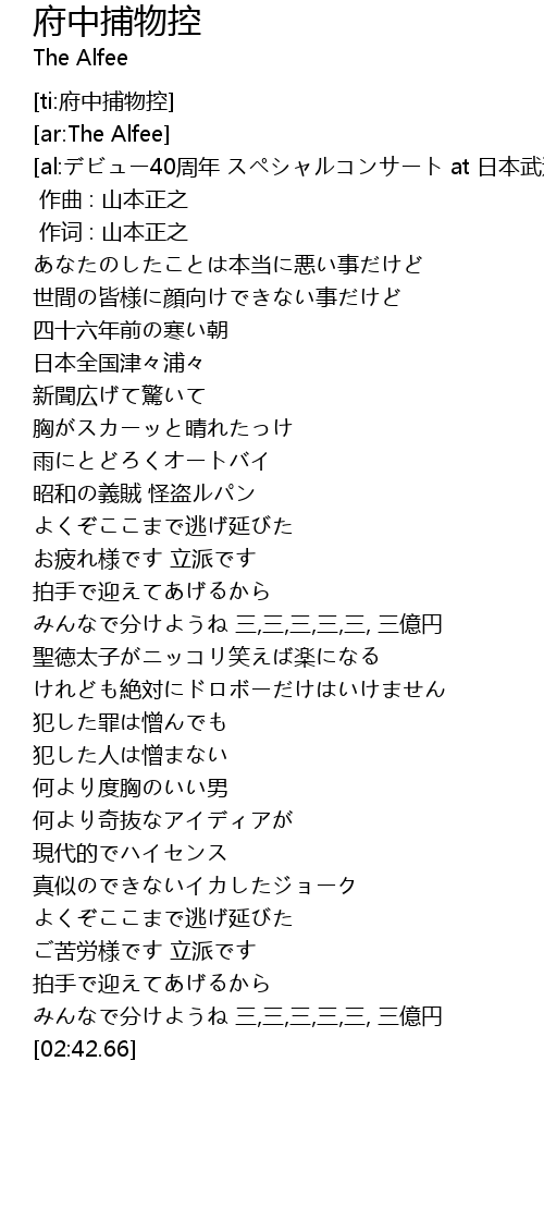| [02:32.70] | みんなで分けようね 三,三,三,三,三, 三億円 |