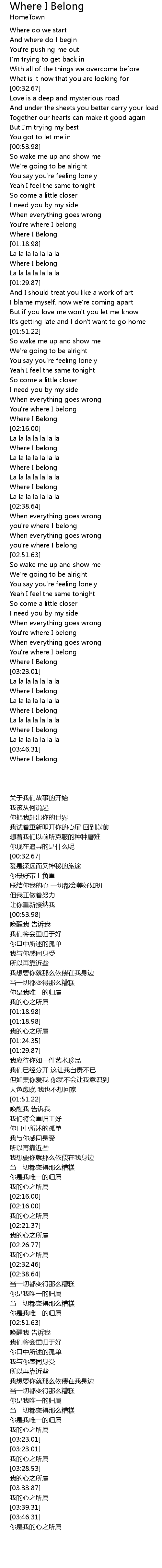 Where I Belong Lyrics