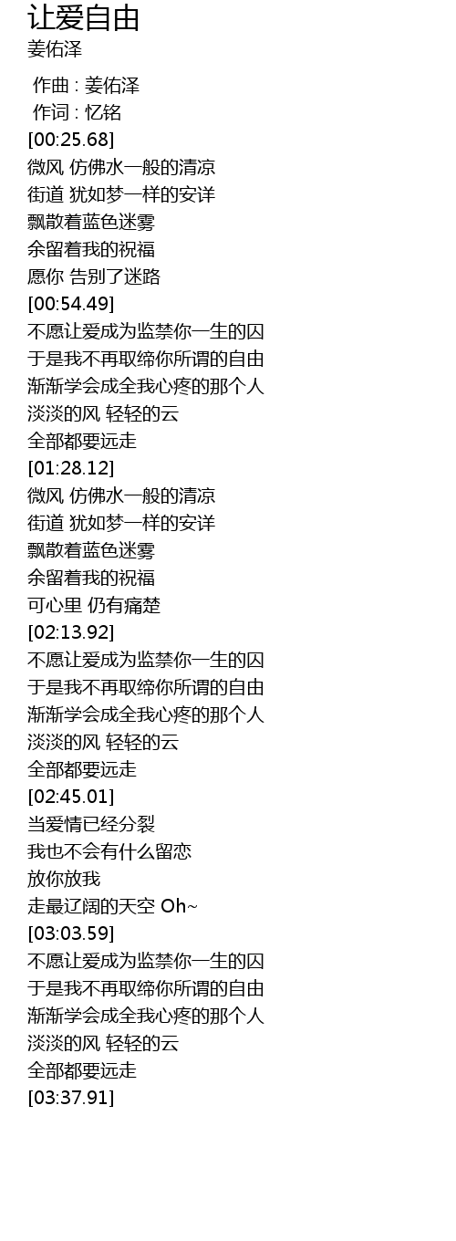 | [02:22.83] | 于是我不再取缔你所谓的自由 |