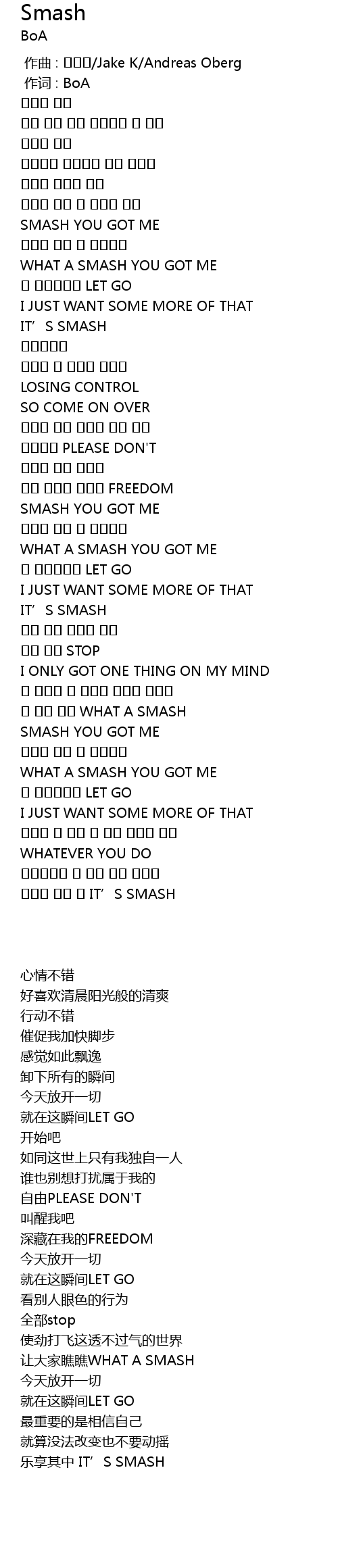 | [00:01.00] | 作词 : BoA |