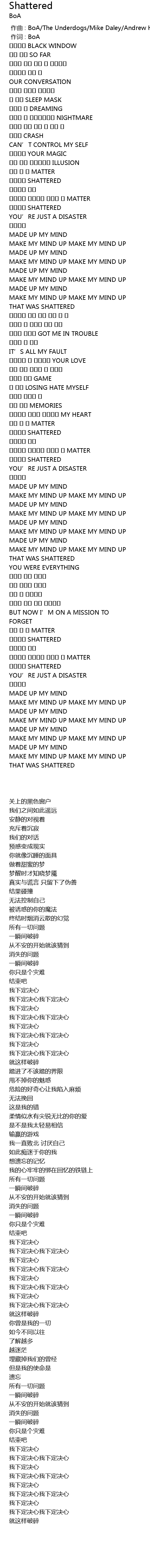 | [00:00.00] | 作曲 : BoA/The Underdogs/Mike Daley/Andrew Hey/Tiffany Fred |
