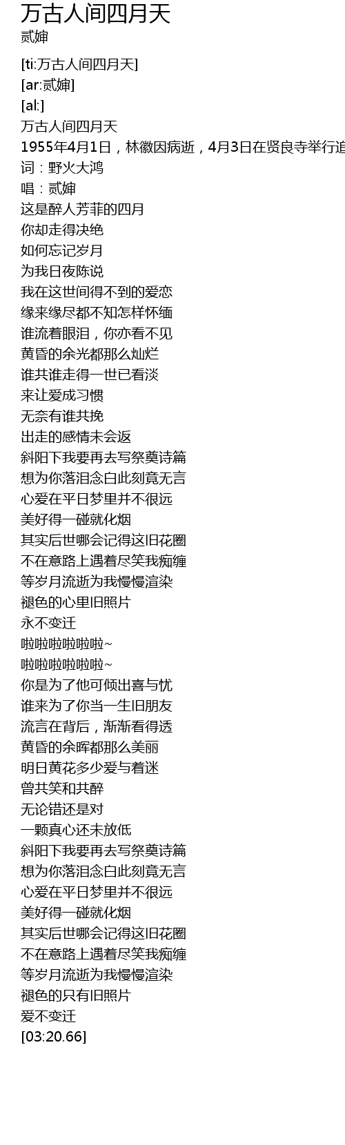 | [00:00.00] | wàn gǔ rén jiān sì yuè tiān |