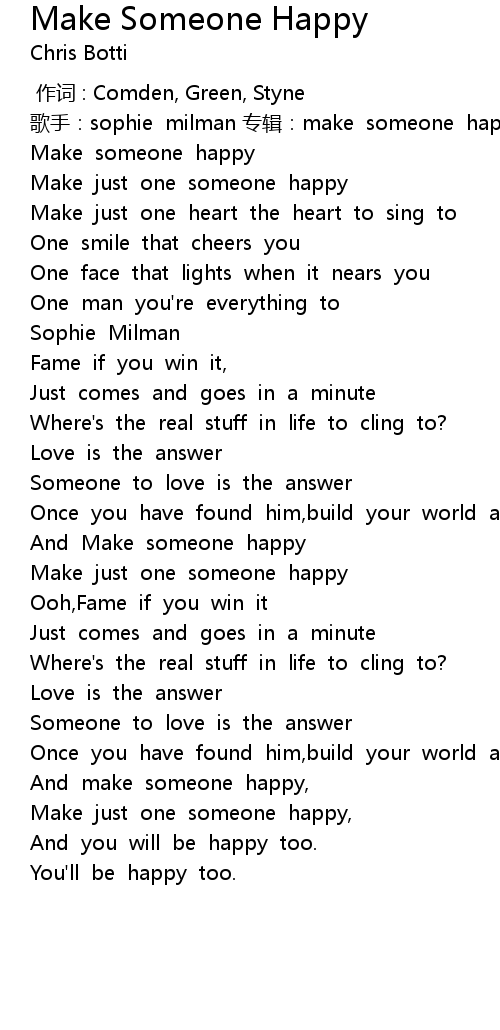 | [00:01.448] | gē shǒu: sophie milman zhuān jí: make someone happy |