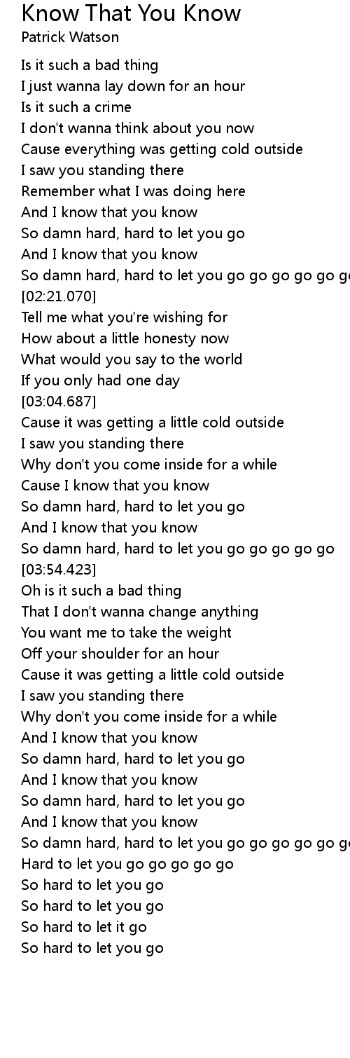 Cause I know that you know |