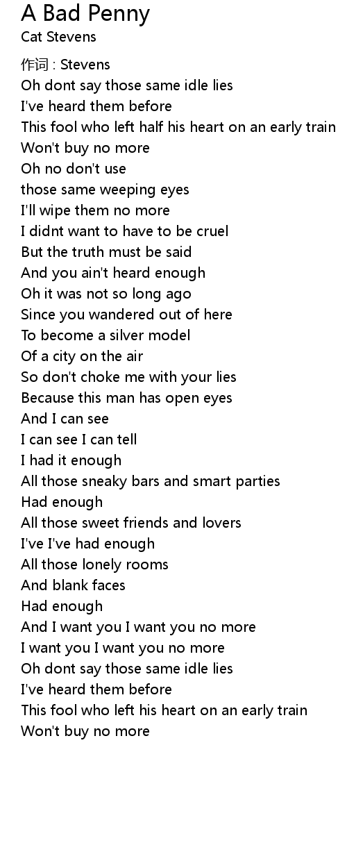 | Song | A Bad Penny |
