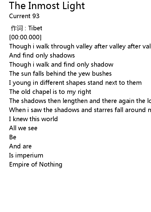 | [00:28.580] | Though i walk and find only shadow |