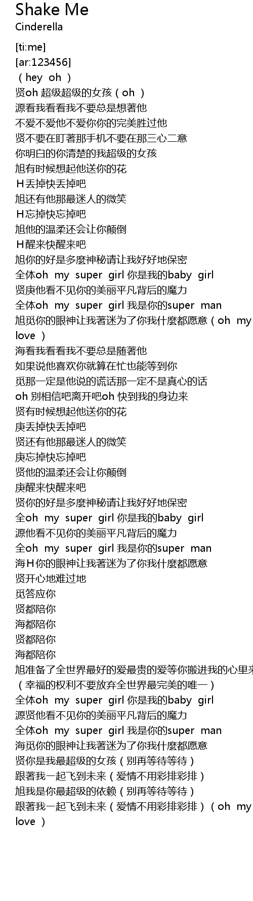 | [01:02.513] | 全体oh my super girl 你是我的baby girl |