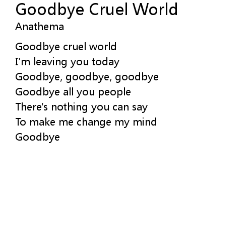 Goodbye Cruel World Lyrics