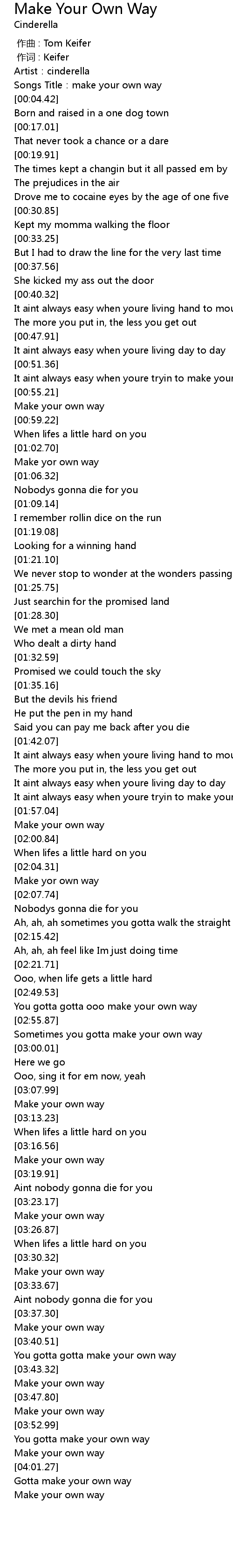 | [02:52.18] | You gotta gotta ooo make your own way |