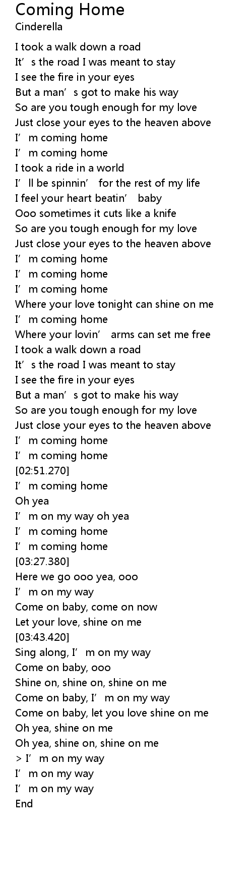 | [00:42.310] | I' m coming home |