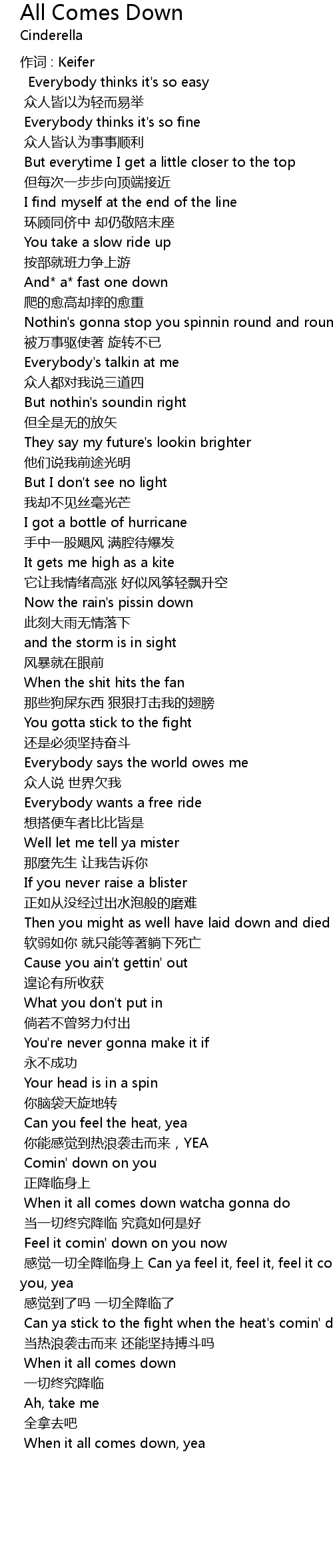 | Song | All Comes Down |
