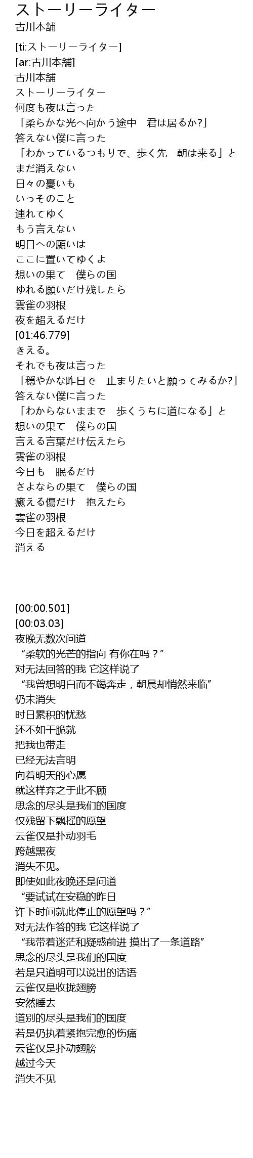| [00:45.296] | 「わかっているつもりで、歩く先 朝は来る」と |
