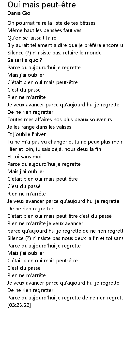 | [02:52.40] | C'é tait bien oui mais peut tre |