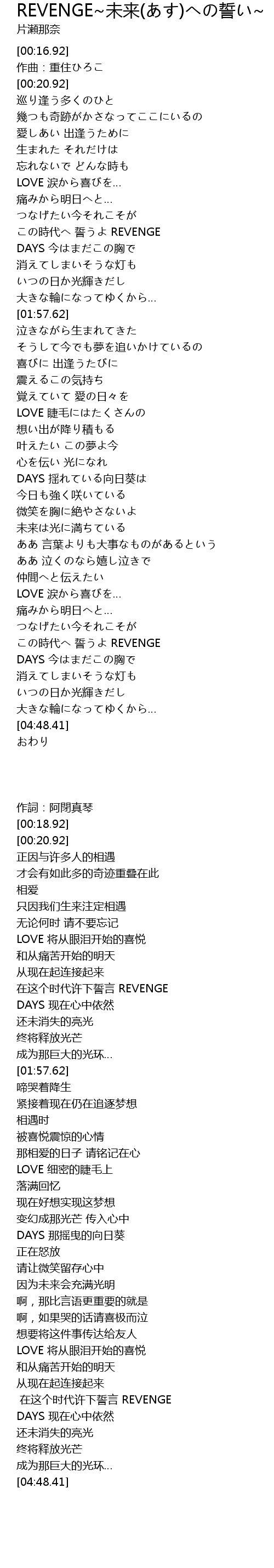 | [04:17.05] | この時代へ 誓うよ REVENGE |