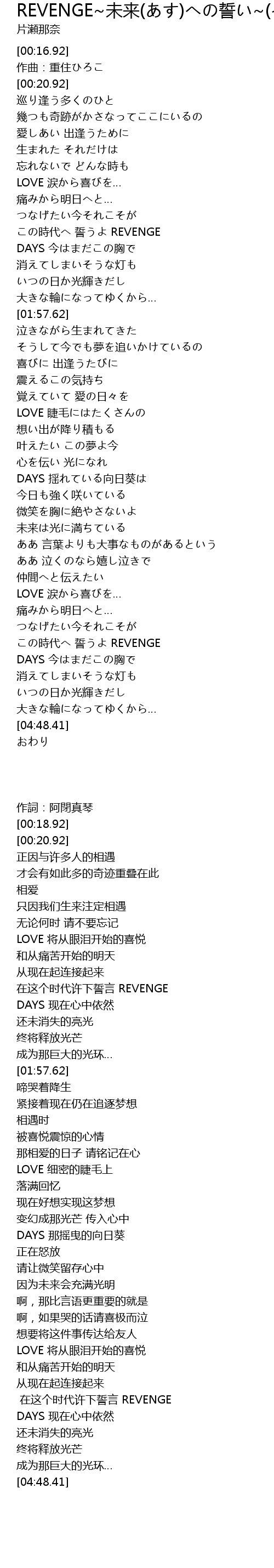 | [04:17.05] | この時代へ 誓うよ REVENGE |