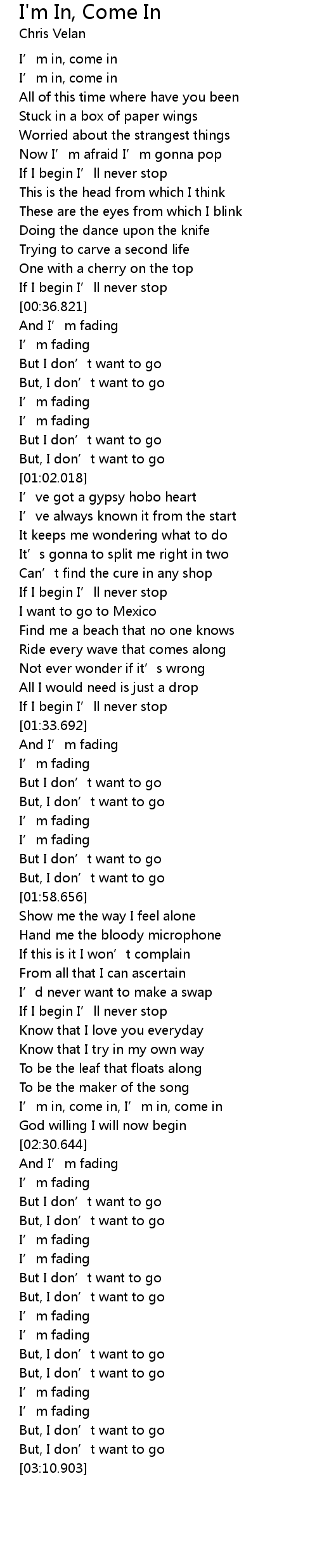 | [02:24.589] | I' m in, come in, I' m in, come in |
