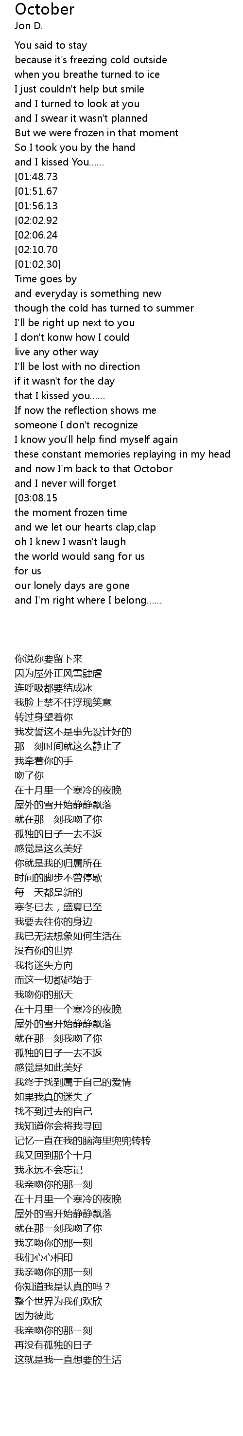 | [02:32.33] | and now I' m back to that Octobor |
