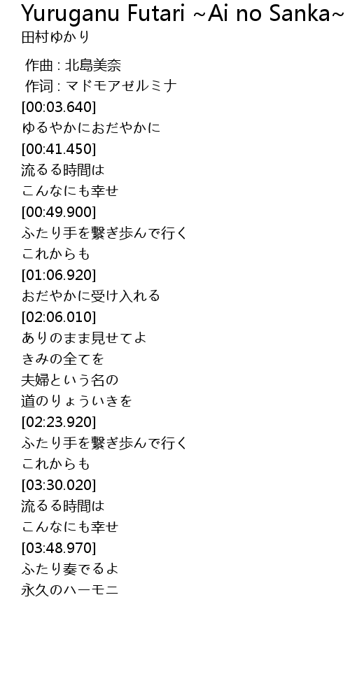 | [01:01.400] | ふたり手を繋ぎ歩んで行く |
