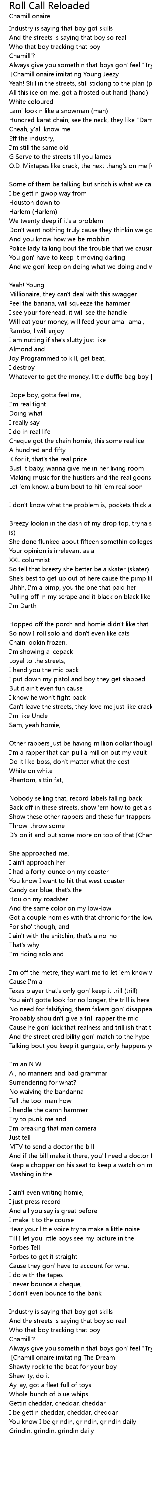 And we gon' keep on doing what we doing and what we causing [Chamillionaire imitating Lil Wayne] |
