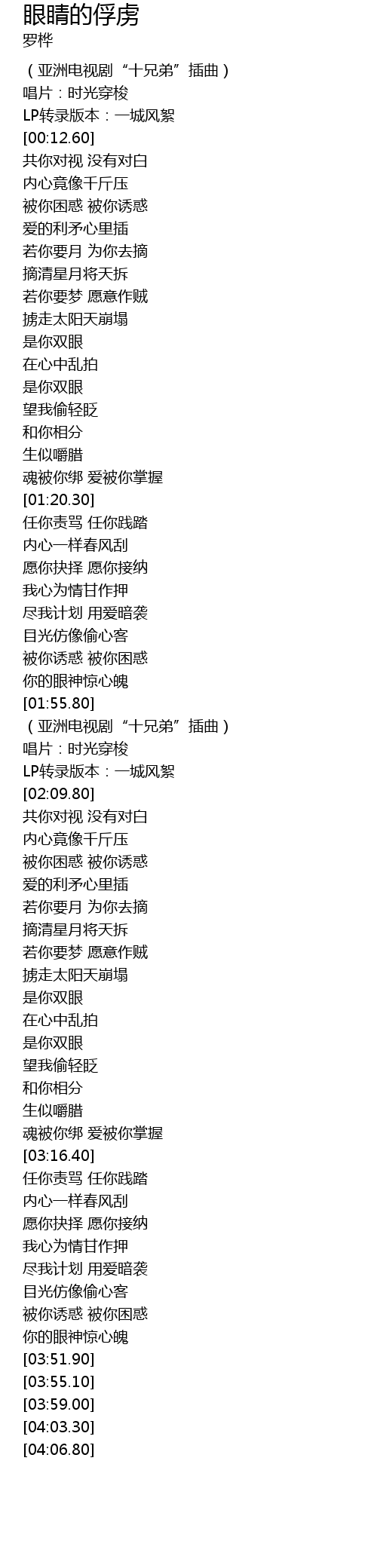 | [01:59.70] | (亚洲电视剧“十兄弟”插曲) |