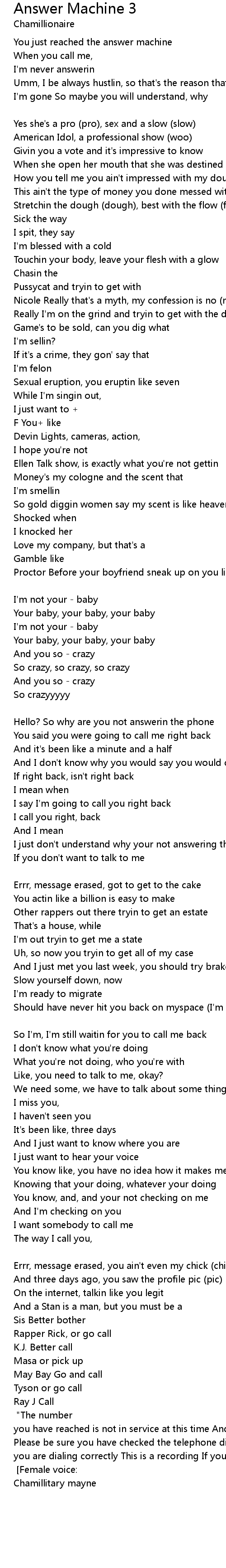 Answer Machine 3 Lyrics