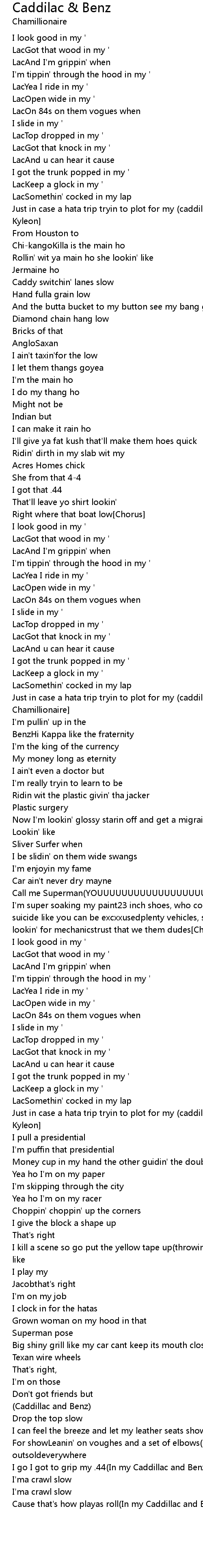 I got 4s on my[Bridge - Chamillionaire](Caddillac and Benz) |