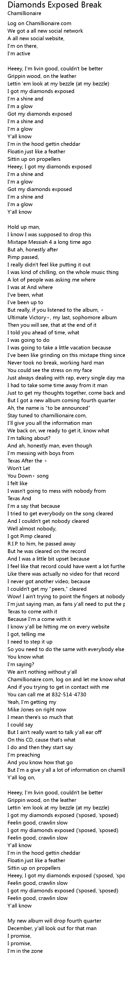 Heeey, I got my diamonds exposed |