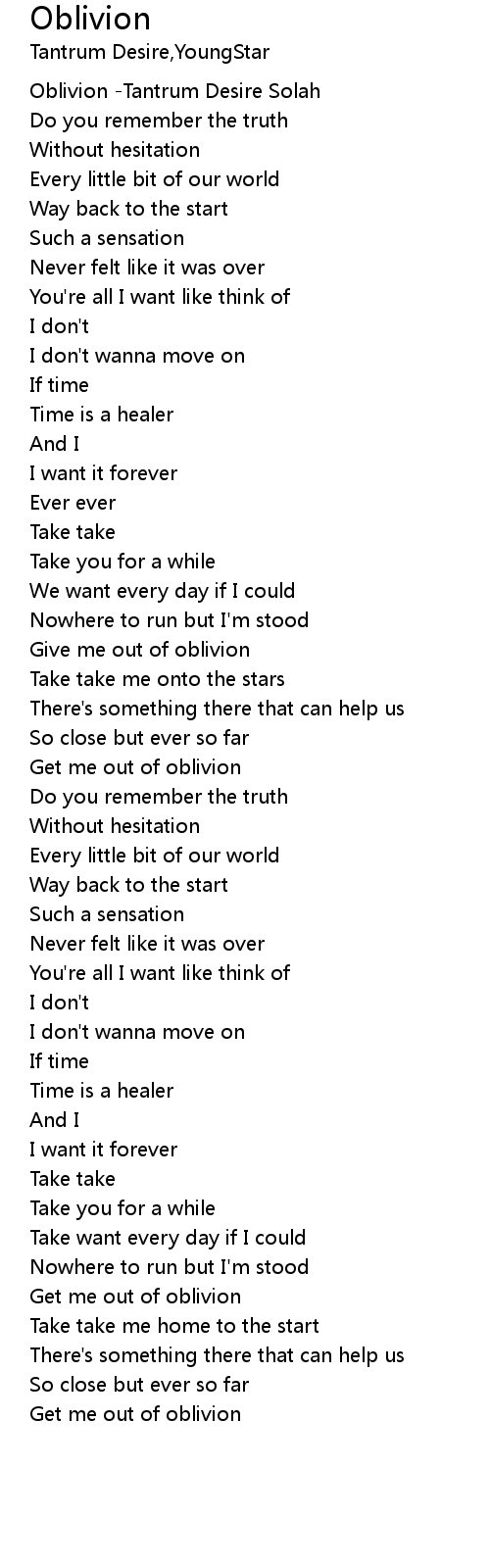 Get me out of oblivion |