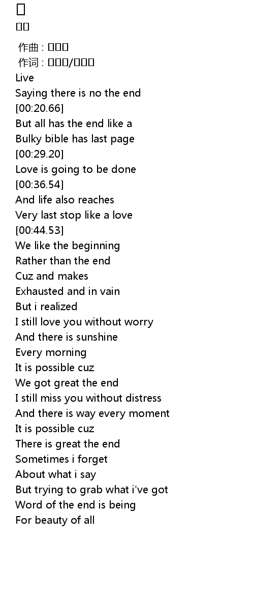 | [00:17.37] | Saying there is no the end |
