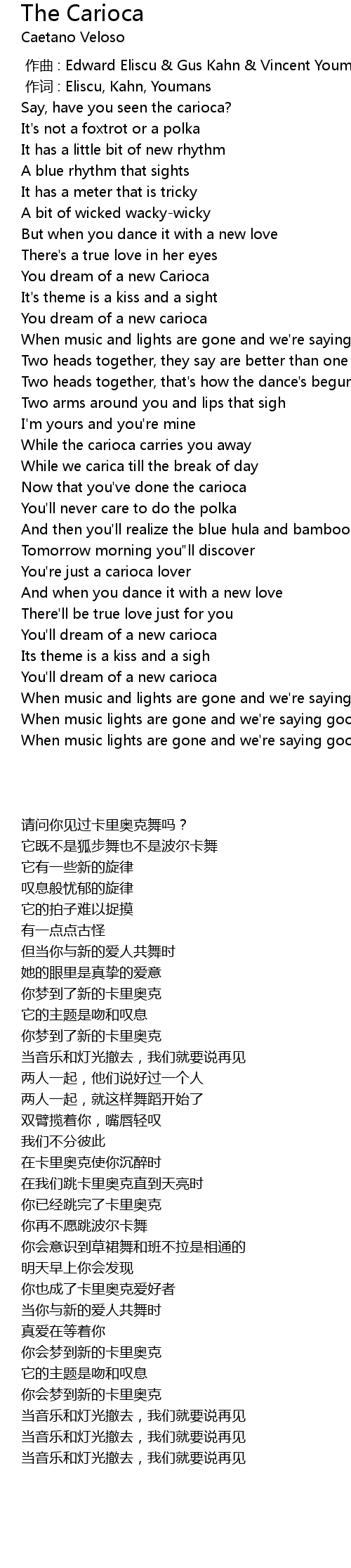 | [00:01.00] | 作词 : Eliscu, Kahn, Youmans |