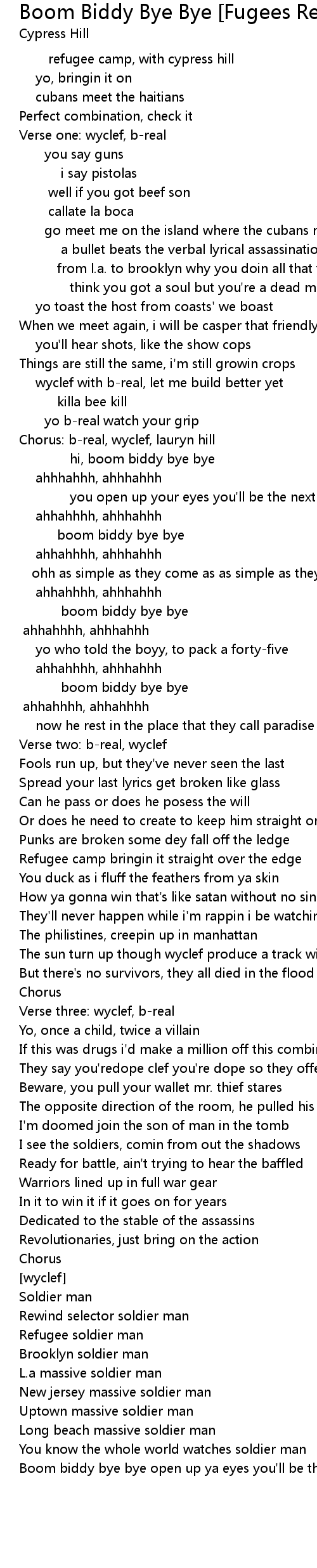 | wyclef you open up your eyes you' ll be the next one to die | |