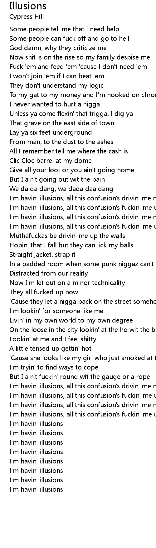I'm havin' illusions, all this confusion's fuckin' me up in my mind