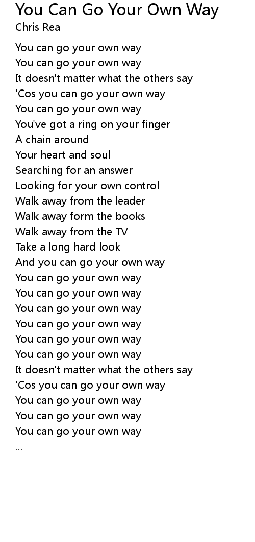 You can go your own way |