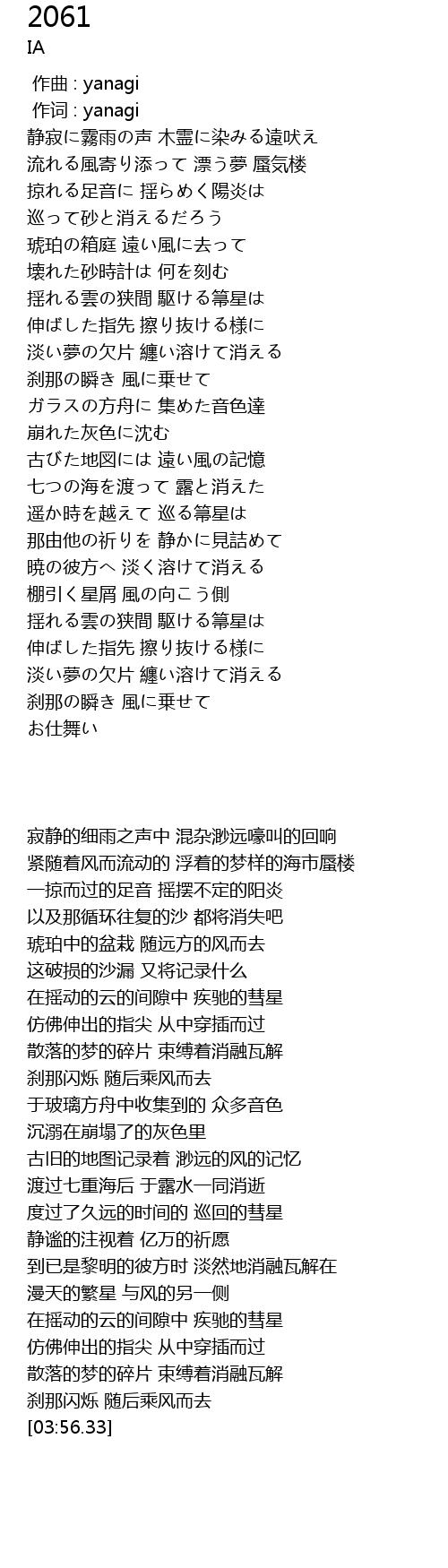 | [00:00.00] | 作曲 : yanagi |