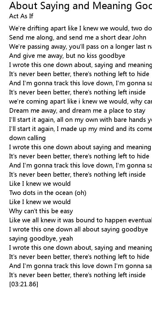 And I'm gonna track this love down, I'm gonna say goodbye |