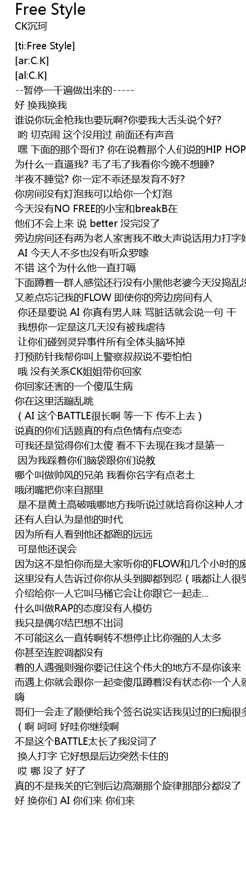 | [01:29.42] | (AI 这个BATTLE很长啊 等一下 传不上去) |