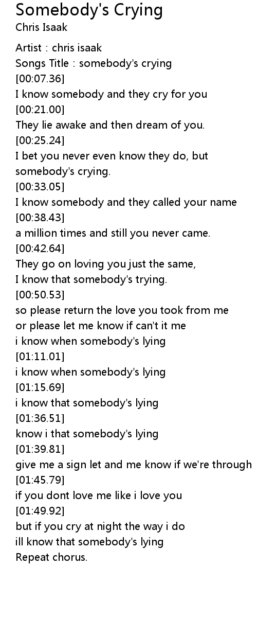 | [01:42.62] | give me a sign let and me know if we' re through |