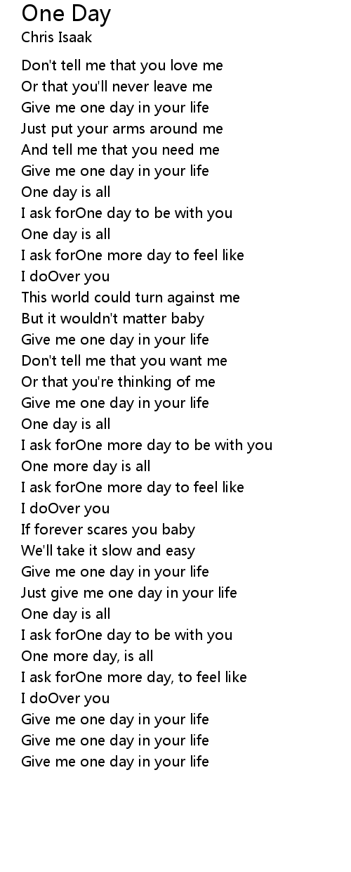 Give me one day in your life |