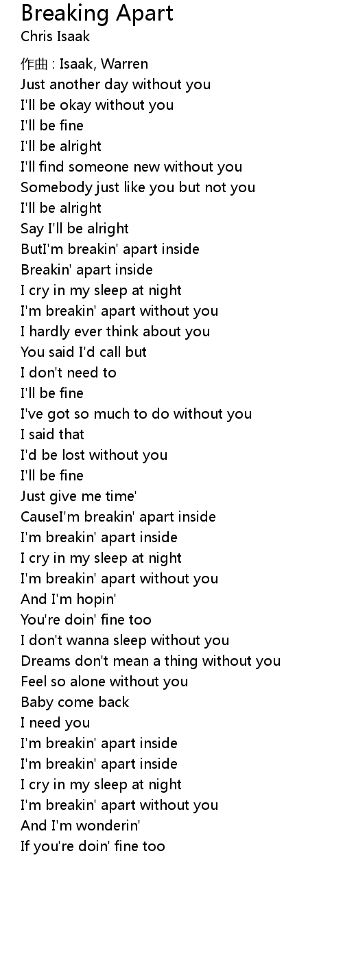 | I' m breakin' apart without you | |