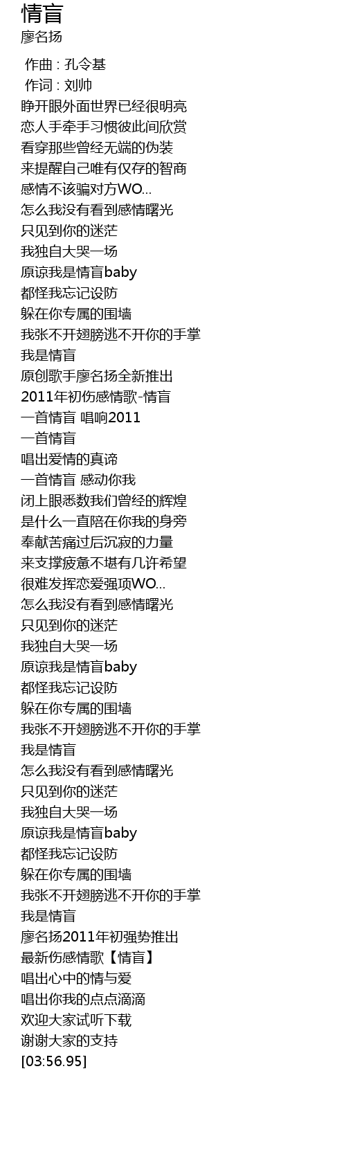 | [03:38.35] | 最新伤感情歌【情盲】 |