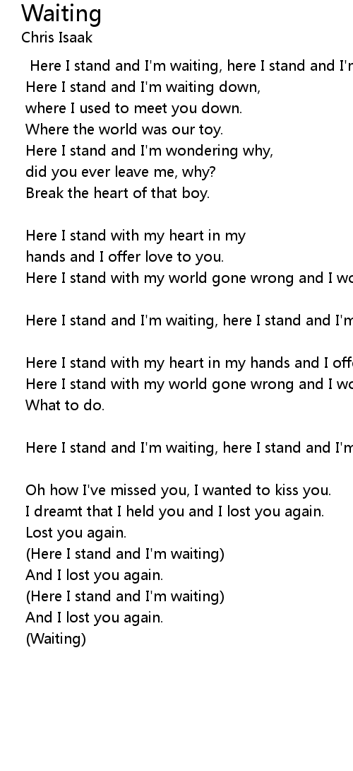 Here I stand and I'm waiting, here I stand and I'm waiting |